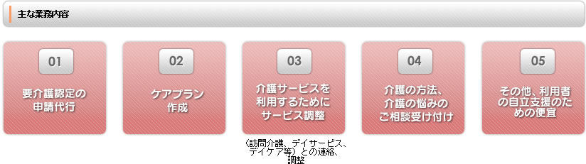 当事業所が、介護保険法に関する法令に従い、居宅サービス計画書に基づき、指定居宅サービス等を円滑に実施するために行うサービス担当者会議等において下記の利用者様の個人情報を使用します。